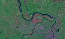 - ↑ Sobre la orilla derecha del Misisipi, en Luisiana; ver: Roger Brunet (dir.), Géographie universelle : États-Unis, Canada, París, Hachette-Reclus, 1992, ISBN 2010148290, p. 176.