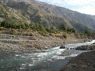 - Paredones (Río de). Ofrece minas de cobre, rodados i laderas de fuerte pendiente en la parte superior de su cajón donde no hai senderos i se encuentran algunos ensanches i un poco de pasto, del que en jeneral es pobre, pues no se halla en el sino manchones verdes compuestos de malezas que los animales no comen; se angosta la quebrada después del ensanche, que sigue aguas abajo de la desembocadura del arroyo de Mamá i el río corre encerrado por macizos, con nieves eternas en sus cimas i caídas en gran parte verticales lo que le ha valido su denominación. Corre hacia el W i con el de Flores forma el río Pangal, del Cachapoal.