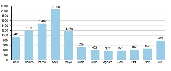 (en m³/s, para una cuenca de 322.823 km², en el período 1982-93)[1]