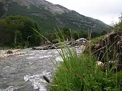 Si bien en todo su trayecto discurre exclusivamente sobre territorio argentino, afluentes por su margen derecha en el sector medio de su cuenca tienen sus nacientes en territorio chileno, de la comuna de Cabo de Hornos ubicada en la Provincia de Tierra del Fuego, en la Región de Magallanes y de la Antártica Chilena. Esto lo define como un río argentino de cuenca argentino-chilena.