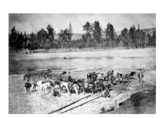 ![]() Recuas de mulas en el río Quesnel (1868) | ||