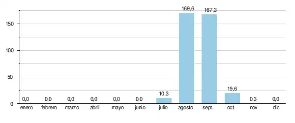 Caudal medio mensual del río Bahr Azoum medido en la estación hidrológica de Am-Timan (en m³/s)
