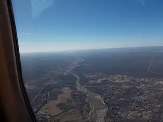 Río Tunuyán visto desde el aire. Al fondo de la imagen puede observarse el Dique El Carrizal | ||
