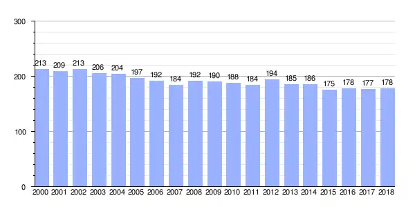 | Gráfica de evolución demográfica de Rañobre entre 2000 y 2018 |
