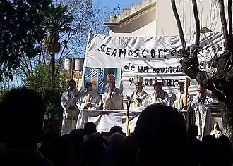 - ↑ De Vedia, Mariano (19 de noviembre de 2015). «La Iglesia reclamó voluntad para resolver la ocupación en Merlo». La Nación. Consultado el 9 de diciembre de 2015.