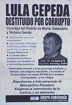 - ↑ Lucesole, María José (11 de agosto de 2015). «Un desenlace inesperado para varios caciques del conurbano bonaerense». La Nación. Consultado el 9 de diciembre de 2015.