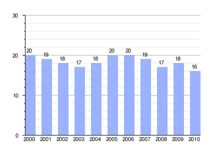 Población de derecho (2000-2010) según los censos de población del INE a 1 de enero de cada año.[5] |