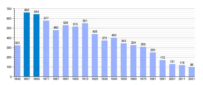 El máximo número de pobladores se alcanzó en 1857, con 662 habitantes de hecho (353 mujeres, 297 hombres, 1 mujer transeúnte y 11 hombres transeúntes). Pocos años después, en 1863, el pueblo contaba con 148 vecinos y "cuatro medios vecinos". La cifra de habitantes habitual ha llegado a casi cuadruplicarse en verano (alcanzando unos 500 habitantes ocasionales y un millar durante las fiestas).