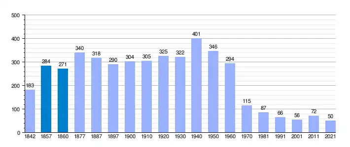 | Gráfica de evolución demográfica de Rada de Haro[3] entre 1842 y 2021 |