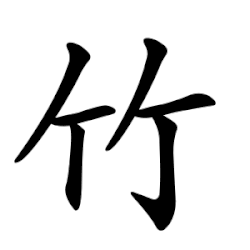 - Japonés: 竹(たけ), take, «bambú» ; 竹冠(たけかんむり), takekanmuri, «“bambú” en la parte superior del carácter».[1]