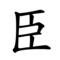 - Mandarín estándar: 臣, chén, ‘ministro’.
