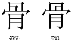 | [[radical 187| ← ⾺]] [[radical 189|⾼ → ]] Radical 188 ‘hueso’ | ||