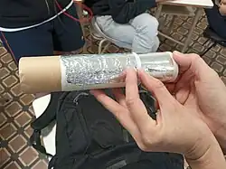 "Radio Foxhole" utilizada en el frente italiano en la Segunda Guerra Mundial. Utiliza una mina de lápiz unida a un pasador de seguridad presionando contra una hoja de afeitar como detector.