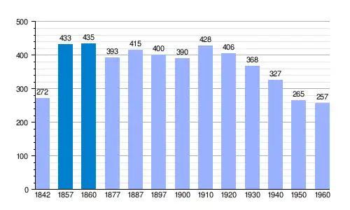 | Gráfica de evolución demográfica de Radiquero[5] entre 1842 y 1960 |