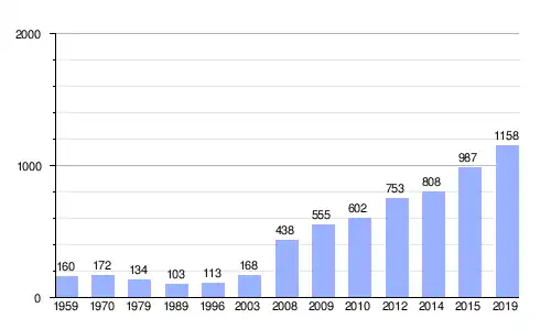 | Gráfica de evolución de Rae entre 1959 y 2019 |