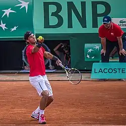 Rafael Nadal Parera (Manacor, Baleares, 3 de junio de 1986), i Marqués del Llevant de Mallorca, es un extenista español. Está considerado ampliamente como el mejor tenista de la historia en pistas de tierra batida[7][8][9]​ y uno de los mejores de todos los tiempos.[10][11][12][13][14][15]​ Es el segundo tenista masculino con mayor número de títulos de Grand Slam en individuales, con 22, solo superado por el serbio Novak Djokovic, con 24, y por delante del suizo Roger Federer, con 20. Consiguió el Abierto de Australia en dos ocasiones, el Torneo de Roland Garros en catorce ediciones (siendo el tenista que más veces lo ha conseguido en toda la historia del torneo), el Campeonato de Wimbledon en dos ocasiones y el Abierto de Estados Unidos en cuatro ocasiones. Se encuentra en segunda posición, tras Novak Djokovic (40), como jugador con más títulos de Masters 1000 en modalidad individual, con 36; y por delante de otros célebres tenistas como Roger Federer (28), el checo Ivan Lendl (22) y los estadounidenses John McEnroe (19), Jimmy Connors (17) y Andre Agassi (17).