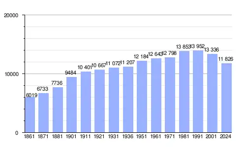 | Gráfica de evolución demográfica de Raffadali entre 1861 y 2024 |