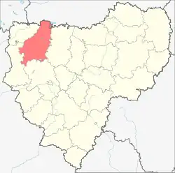 Comprende la ciudad de Demídov (la capital), el asentamiento de tipo urbano de Przheválskoye y los asentamientos rurales de Borki (con capital en Zheruny), Zaborie, Stari Dvor y Titovshchina. Estas seis entidades locales suman un total de 233 localidades.[3]