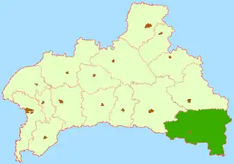 Comprende las ciudades subdistritales de Stolin (la capital) y Davyd-Haradok, el asentamiento de tipo urbano de Réchytsa y los siguientes 19 consejos rurales:[1]