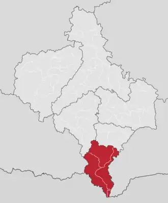 Comprende una superficie de 1271,7 km². Se ubica en el sur de la óblast, limitando al oeste con la óblast de Transcarpacia y al este con la óblast de Chernivtsí. Es fronterizo con Rumania al sur.[3]