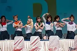 ![]() Rainbow en marzo de 2016 en un fanmeeting. De izquierda a derecha: Jaekyung, Woori, Hyunyoung, Jisook, Noeul, Seungah y Yoonhye | ||