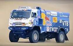 En camiones se esperaba un nuevo duelo entre Kamaz e Iveco. La marca rusa presentó al último campeón Eduard Nikoláiev y a Dimitri Sotnikov. Iveco presentó al argentino Federico Villagra.