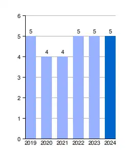| Gráfica de evolución demográfica de Rambla del Agua entre 2019 y 2024 |