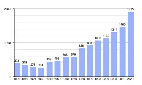 | Gráfica de evolución demográfica de Rancho Nuevo entre 1900 y 2020 |