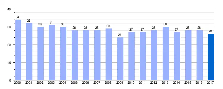 | Gráfica de evolución demográfica de Ranedo de Curueño entre 2000 y 2017 |
