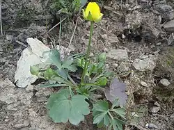 Es una planta perenne (Hemicriptófito), y llega hasta 50 cm de altura con una roseta de hojas basales. La planta e claramente pelosa y las hojas basales son poco divididas, las superiores son lobadas. Tiene flores grandes hasta 35 mm de diámetro de color amarillo. Las semillas son aquenios que están comprimidos y aquillados y con el pico recto.