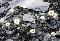 El botón de nieve o Ranunculus parnassiifolius es una hierba de la familia Ranunculaceae.