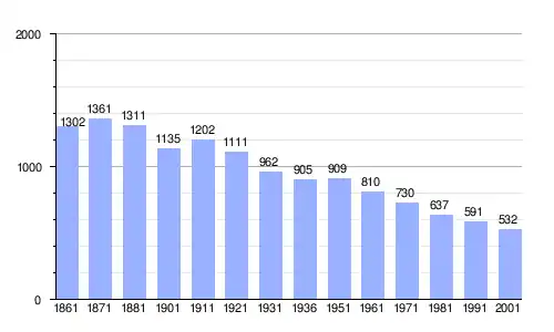 | Gráfica de evolución demográfica de Ranzo entre 1861 y 2001 |
