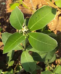 Se usa el cocimiento de tallos o frutos machacados tópicamente en emplastos para la mordedura de serpientes, picadura de avispas y escorpiones; el cocimiento y hojas de tallo se usa para curar úlceras, sarna, sífilis, y otras enfermedades cutáneas; la ceniza de la planta quemada se aplica en las heridas para evitar infecciones; la decocción de raíz se usa para bajar la hipertensión y tratar afecciones orales y erisipela; el extracto de la corteza con aceite sirve para curar la sarna y otras afecciones cutáneas. El látex se usa para caries dentales, fortalecer las encías, colirio oftálmico y cicatrizar. Los frutos machacados se usan para tratar tinea.