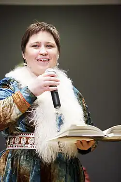 - ↑ Skåden, Sigbjørn; Fredriksen, Lill Tove (12 de julio de 2020). «Rawdna Carita Eira». Store norske leksikon (en noruego bokmal). Consultado el 2 de octubre de 2020.