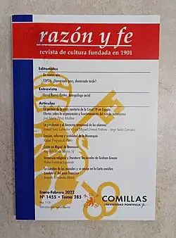 - ↑ «Razón y fe. Boletín de sumarios. Biblioteca del Instituto Cervantes de Madrid». www.cervantes.es. Consultado el 23 de junio de 2020.