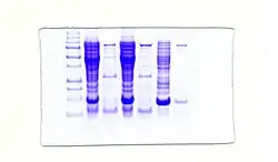 Para verificar que la PCR ha generado el fragmento de ADN previsto, se emplean técnicas de electroforesis, que separan los fragmentos de ADN generados de acuerdo a su carga, esto es, longitud, y, en menor medida y dependiendo de la matriz empleada, a su tamaño: típicamente se emplean la electroforesis en gel de agarosa, para fragmentos grandes; en acrilamida, para los más pequeños; y, de forma más rápida y aplicable a la PCR asociada a marcaje fluorescente, la electroforesis capilar.[8] El/los tamaño/s de los productos de la PCR vienen determinados por un marcador de peso molecular de ADN, el cual contiene fragmentos de ADN de tamaño conocido, y que se corre en el gel junto con los productos de PCR.