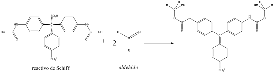 El reactivo de Schiff reacciona con el grupo formilo formando un compuesto coloreado azul-violeta.