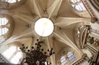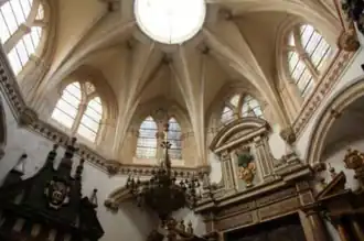 La capilla fue construida a mediados del siglo XV. Da acceso a la capilla de las Reliquias y a la sacristía.[1] Es de planta cuadrada y está cubierta con bóveda de crucería octogonal. La capilla está iluminada por la linterna cenital y por ventanas góticas geminadas con vidrieras de motivos geométricos (cuadrados y hexágonos).[1][2]
