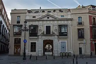 En 1583 comenzó a construirse una Casa Lonja para los cargadores a Indias (actual Archivo General de Indias) en la parcela donde estaban el Hospital de las Tablas, las Herrerías del Rey y la Casa de la Moneda.[7]