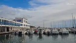 Se encuentra en la zona central del puerto. Su sede social es un edificio de varios pisos o cubiertas que se asemeja a un gran barco de pasajeros anclado en el muelle. El Club ha ido ampliando progresivamente sus instalaciones y su capacidad de amarres y servicios generales. La última obra realizada para extender sus terrenos a Levante del edificio principal ha hecho aumentar sus amarres, con cerca de 200 plazas, de las que 48 son para embarcaciones en tránsito. Cuenta con servicios complementarios de varadero, grúa y mecánica, electricidad, agua potable, repostaje de combustible y recogida de basuras, además de emisora de radio, duchas y aseos.[1]