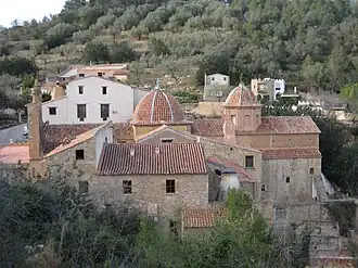La iglesia se sitúa en el centro del conjunto y a la izquierda del cauce que atraviesa el conjunto. A la derecha se encuentra el pozo fuente del Milagro y la Cocina medieval. Sobre éstos, alrededor de un patio y en dos alturas se desarrolla la hospedería. A la izquierda de la iglesia se disponen la antigua casa «dels Capellans» y los restos de un antiguo e inacabado palacio. Toda el ala izquierda a la iglesia ha sido adecuada ahora como restaurante y museo.