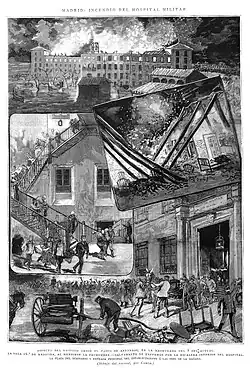 - ↑ «Incendio del Hospital Militar». El Correo Militar (Madrid) (4.001): 2. 8 de febrero de 1889. ISSN 2171-701X.