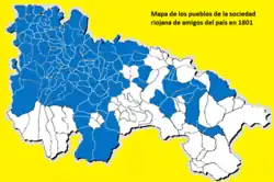 Mapa de los pueblos (en Azul) integrantes de la Real Sociedad Económica de La Rioja en el año 1801.[4]