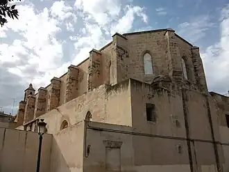 El claustro y el refectorio son de estilo gótico valenciano y la iglesia de decoración barroca. Hay inscripciones en las claves de la bóveda del refectorio y un arco gótico de doble vuelta que gira sobre sí mismo. El "compás" o segundo claustro es una plaza porticada desde la que se accede a la iglesia. La fachada del templo es un magnífico ejemplo del gótico flamígero y su decoración recuerda a la Lonja y hay una réplica de un magnífico rosetón de cerámica renacentista. También hay diversas pinturas barrocas y numerosas reliquias, entre ellas un fragmento de la cruz de Cristo o lignum crucis y una espina de su corona.