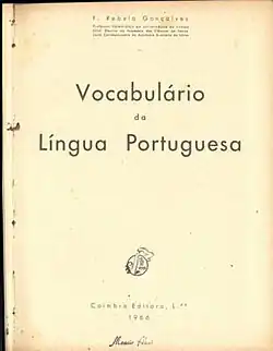 Primera página del libro Vocabulario da Língua Portuguesa. Coímbra, 1966. | ||