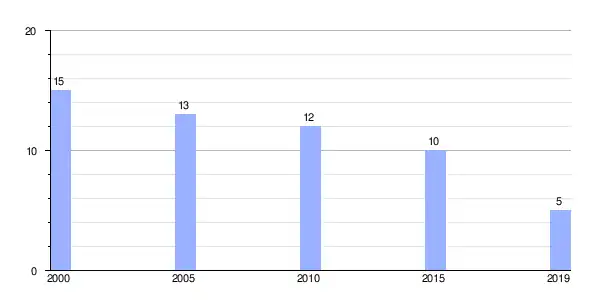 | Gráfica de evolución demográfica de Rebodepó entre 2000 y 2019 |