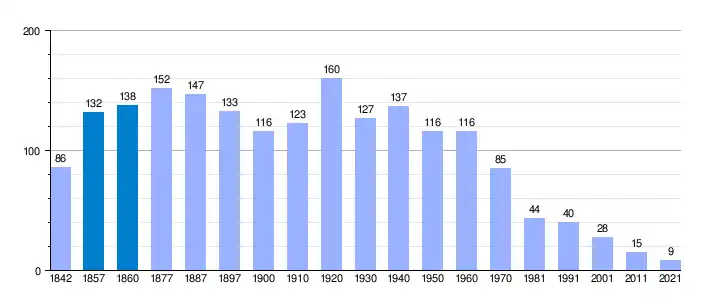 | Gráfica de evolución demográfica de Rebollosa de Jadraque[3] entre 1842 y 2021 |