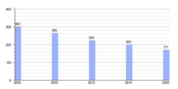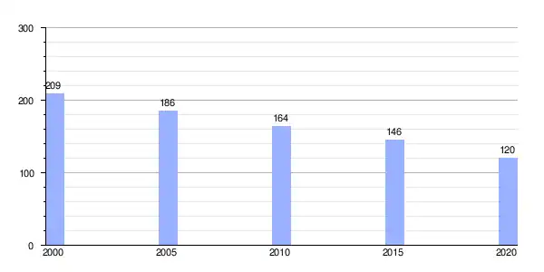 | Gráfica de evolución demográfica de Rececende (aldea) entre 2000 y 2020 |