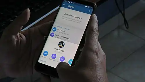 Telegram es una aplicación de mensajería y llamadas VOIP desarrollado por Pável Dúrov y su hermano Nikolái. El servicio, desarrollado bajo el protocolo MTProto y administrado por una organización de responsabilidad limitada, fue objetivo de elogios y controversias del público, los especialistas, instituciones y gobiernos. El servicio tiene 1000 millones de usuarios activos mensuales en 2025. Comparado a los 400 millones de 2020,[1] 300 millones en 2019 y 200 millones en marzo de 2018.[2]