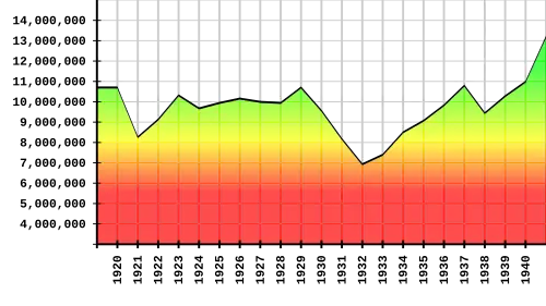 El empleo en las fábricas del sector privado recuperó los niveles alcanzados a principios de 1929 y principios de 1937, pero no los superó hasta el inicio de la Segunda Guerra Mundial. La productividad aumentó constantemente y la producción en 1942 estaba muy por encima de los niveles de 1929 y 1937.